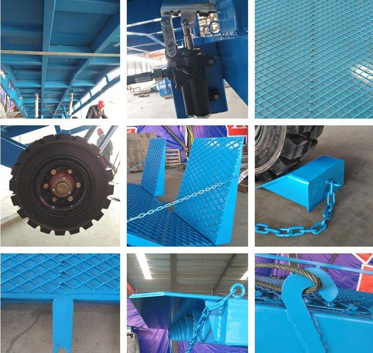 淄博登車橋-集裝箱登車橋-叉車搭橋-折疊式登車橋是與叉車配合使用的貨物裝卸輔助設(shè)備。有了它,叉車能直接從地面駛?cè)肫囓噹麅?nèi)部進(jìn)行批量裝缷作業(yè)。產(chǎn)品采用人工液壓動(dòng)力,不需接動(dòng)力電源,移動(dòng)式登車橋坡面采用特制的高強(qiáng)度齒形鋼格板,具有的防滑性能,使叉車有更好的爬坡能力和操控性。即使在雨雪天,仍能保障正常作業(yè)。隨機(jī)配置的剎車墊,能有效防止叉車在登車橋上行走作業(yè)時(shí),登車橋發(fā)生溜車及移動(dòng)以保障作業(yè)安全。只需單人操作,即可實(shí)物的安全快速裝卸。