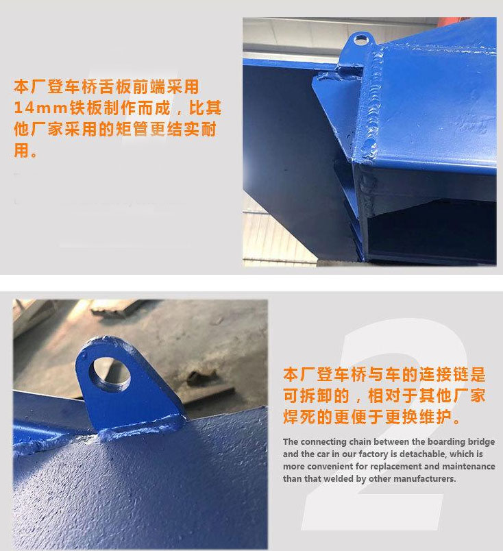 二、可調(diào)節(jié)長度的索鏈能方便地鉤住貨車,使登車橋與貨車始終緊密貼合。