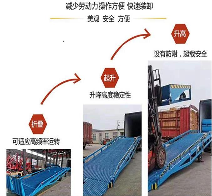 聊城登車橋-貨臺裝車升降平臺-電動液壓固定登車橋-集裝箱卸貨平臺-是實物快速裝卸的輔助設(shè)備,它的高度調(diào)節(jié)功能使用貨車與庫房的貨臺之間架起一座橋梁,叉車等搬駛及貨車內(nèi)部進行貨物的批量裝卸,僅需單人作業(yè),即可實物的快速裝卸。它使企業(yè)減少大量勞動,提高工作效率,獲取更大經(jīng)濟效益。